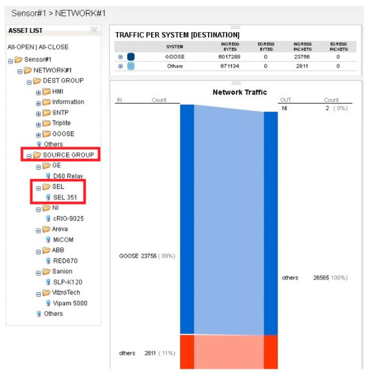 The contributions of our work are as follows. First, we propose NSM application and integration using a cyber–physical security testbed. The testbed can be applicable for assessing and monitoring risk in a digital substation environment. Second, IEC 61850 protocol’s specification-based metrics are newly investigated. To this end, the generic object-oriented substation environment (GOOSE) and manufacturing message specification (MMS)’s specific factors are captured from this experimental data, and used for the proposed NSM use cases. Third, we test the real network traffic data captured from both the North American and South Korean digital substation environment. As far as we know, Korea has adopted one of the most advanced smart grid technologies in the world, strongly driven by the government. To our best knowledge, this work is the first attempt to analyze real operational network data of both the U.S. and Korean smart grid environments, which is globally applicable to any other countries employing the IEC 61850 protocol in the smart grid.