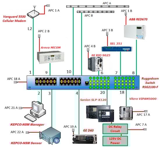 In Figure 1, physical equipment in a substation is managed by either protection, control, or measurement IEDs. The key insight gained from Figure 1 is that cyber–physical interaction between physical and digital component is critical in a substation automation environment. The concept of NSM then provides the description of the real-time interaction between remote digital systems and the physical switchyard devices.