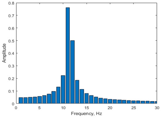 The amplitude spectrum of the signal using the Hanning window transform is shown in Figure 9.