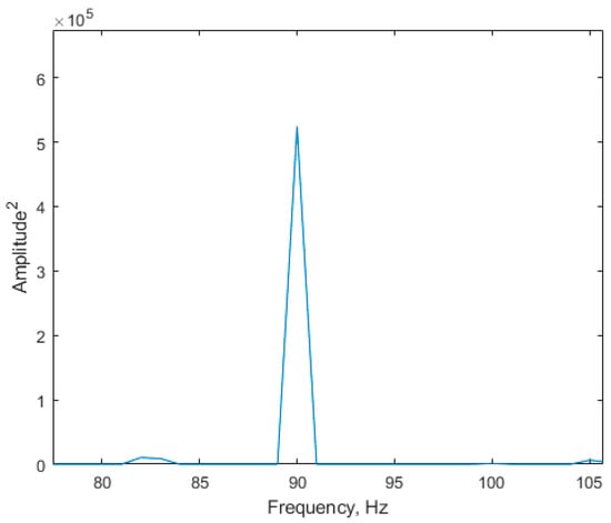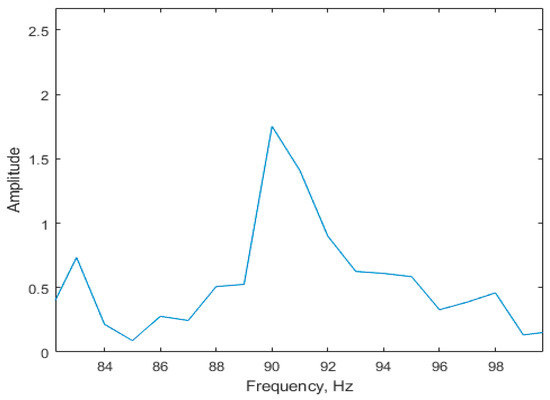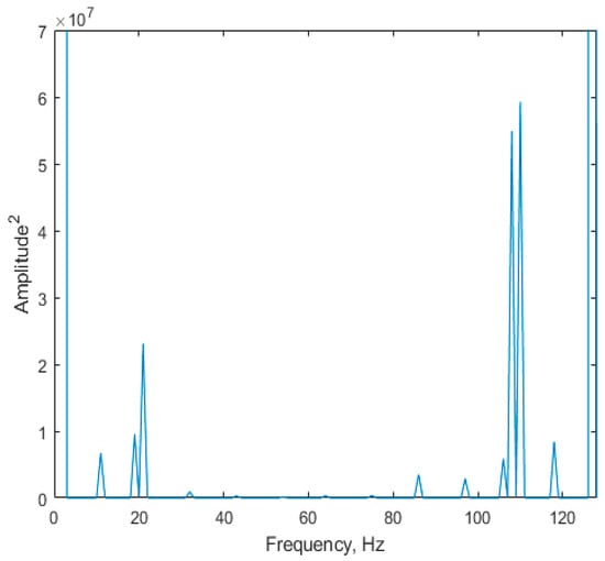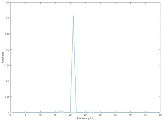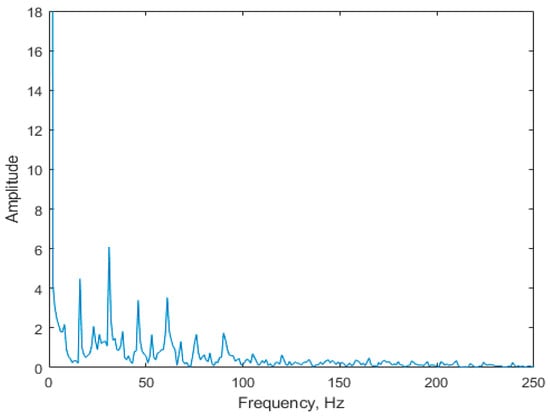 Piezoelectric sensors are common hardware for abovementioned tasks. Usually these sensors have an internal DSP processor for calculating FFT. However, this Fourier transform has limitations, since it is hardware-implemented and works over a limited period; therefore, the question of increasing the FFT resolution arises. Figure 18 shows the amplitude spectrum of a faulty asynchronous motor in steady state. The measurements were carried out on the engine Elnor 1.1 kW [15].