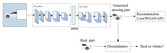 Figure 5 shows the process of inpainting the right predicting region in the white box. The upper half of the figure describes the process of generating the virtue image using the auto-encoding structure [38]. The rest of the figure describes the decision process by the discriminator of GAN.