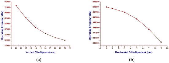 Operating frequency corresponding to misalignment. (a) Operating frequency corresponding to the vertical misalignment. (b) Operating frequency corresponding to the horizontal misalignment.