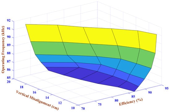 Power transfer efficiency against to the vertical misalignment and operating frequency.