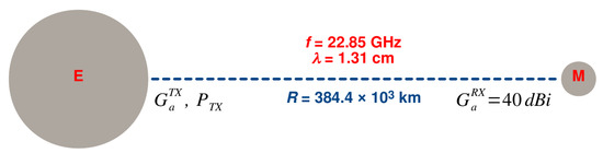 9]. In creating the scenario, only the case of a direct communication between Earth and Moon was considered (i.e., no repeaters and no transponders), since this is the most critical situation (greater link distance, presence of the Earth atmosphere). Three ground stations were assumed on the Earth (with the transmitters), namely: