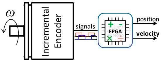 - Hace, A.; Čurkovič, M. Accurate FPGA-based velocity measurement with an incremental encoder by a fast generalized divisionless mt-type algorithm. Sensors 2018, 18, 3250. [Google Scholar] [CrossRef] [PubMed]