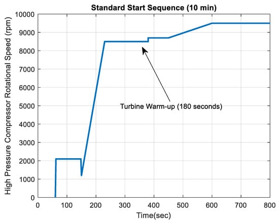 Additionally, investigation and implementation of improving the performance of start-up phase were carried out by GE company researchers. For instance, the start-up phase of a normal industrial gas turbine, GE LM6000, which takes 10 min is displayed in Figure 2.