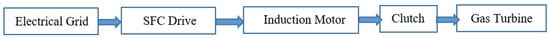 In most industrial gas turbines, including the studied one in this research, active components in the cold start-up phase include asynchronous AC motor and static frequency converter (SFC) to control the induction motor and clutch as shown in Figure 4.