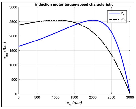 The characteristic torque-speed of the induction motor under study with two different rotor resistances is shown as in Figure 14. As the rotor resistance increases, the starting torque and the sliding amount at which the maximum torque occurs change.