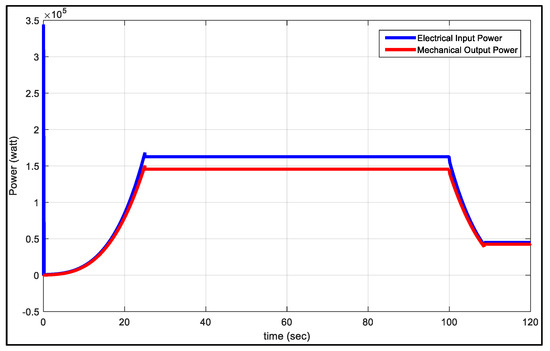 As visible in Figure 22, during the time interval of t = 0–25 s, when the load required mechanical power is increasing, the input electric power to the motor – drive set also increases. In fact, the drive input power is equal to the sum of load required mechanical power and electric and mechanical dissipations of motor–drive set.