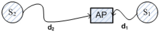 A simple scenario of two nodes communicating with an AP (Access Point) in the presence of physical layer (PHY) capture effect.