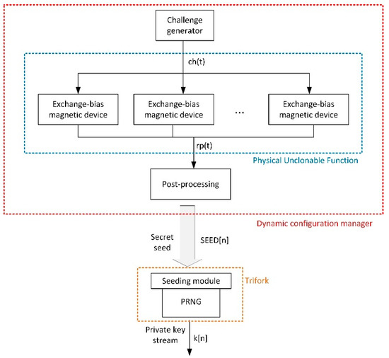 - Maes, R.; Van Herrewege, A.; Verbauwhede, I. PUFKY: A Fully Functional PUF-Based Cryptographic Key Generator. In Proceedings of the International Workshop on Cryptographic Hardware and Embedded Systems (CHES’12), Leuven, Belgium, 9–12 September 2012; Springer: Berlin, Heidelberg, 2012; Volume 7428, pp. 302–319. [Google Scholar]