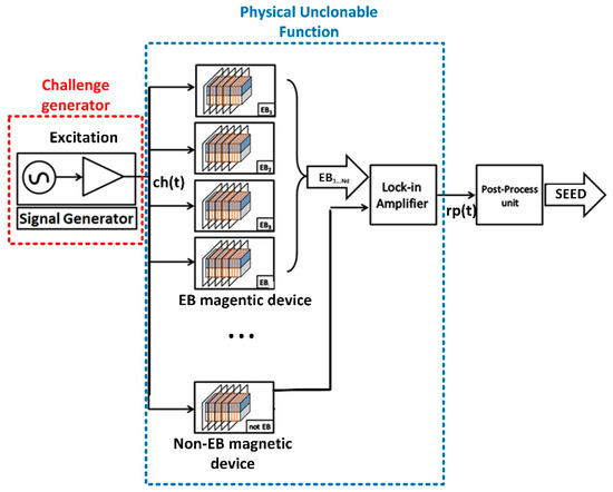 - Chen, Q.; Csaba, G.; Lugli, P.; Schlichtmann, U.; Ruhrmair, U. The Bistable Ring PUF: A new architecture for strong Physical Unclonable Functions. In Proceedings of the 2011 IEEE International Symposium on Hardware- Oriented Security and Trust (HOST’11), San Diego, CA, USA, 5–6 June 2011; pp. 134–141. [Google Scholar]