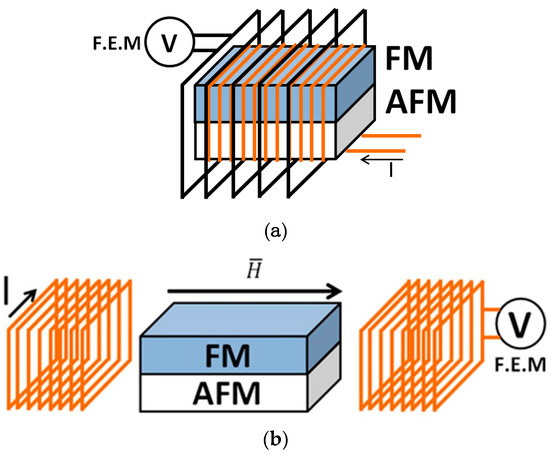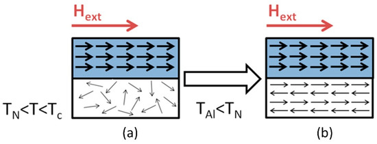 - Migliorini, A.; Kuerbanjiang, B.; Huminiuc, T.; Kepaptsoglou, D.; Muñoz, M.; Cuñado, J.L.F.; Camarero, J.; Aroca, C.; Vallejo-Fernández, G.; Lazarov, V.K.; et al. Spontaneous exchange bias formation driven by a structural phase transition in the antiferromagnetic material. Nat. Mater. 2018, 17, 28. [Google Scholar] [CrossRef] [PubMed]