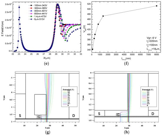 - Mao, W.; Fan, S.-J.; Du, M.; Zhang, J.-F.; Zhang, J.-C.; Zheng, X.-F.; Wang, C.; Ma, X.-H.; Zhang, J.-C.; Hao, Y. Analysis of the modulation mechanisms of the electric field and breakdown performance in AlGaN/GaN HEMT with a T-shaped field-plate. Chin. Phys. B 2016, 25, 127305. [Google Scholar] [CrossRef]