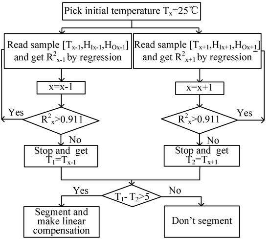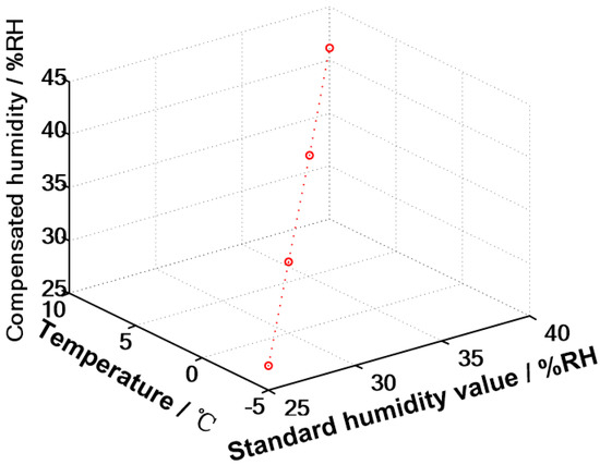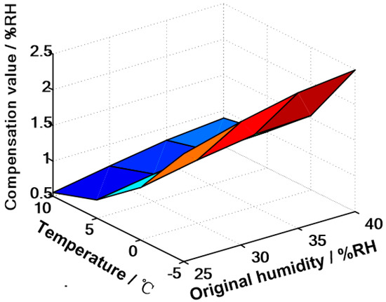 In addition, the introduction of independent component analysis method into the reconstruction of measured error might further improve the compensation effect [20]. It should be added that the initial temperature is 25 °C when determining the segmentation point in this method. This temperature is employed because the humidity error of the sensor used in this experiment is relatively linear at approximately 25 °C after multiple measurements. If other sensors are used, the initial values will be determined according to the humidity curves of those different sensors. However, the initial values will be not very strict, and the nearby values can be adaptively processed as initial values.