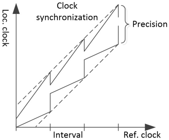 - Wedde, H.F.; Freund, W. Harmonious internal clock synchronization. In Proceedings of the 12th Euromicro Conference on Real-Time Systems, Stockholm, Sweden, 19–21 June 2000; pp. 175–182. [Google Scholar] [CrossRef]