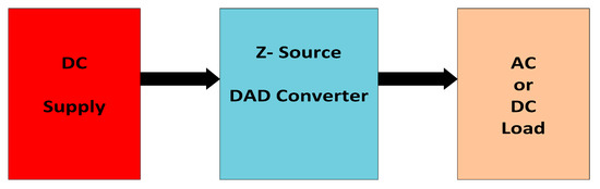 At present, most of the photovoltaic (PV) power generation systems employ two-stage power conversion circuits. To increase the PV system efficiency the first power conversion circuit is used to operate the solar PV system at the Maximum Power Point (MPP) of the panel. The second power conversion circuit is used to get the desired output voltage to satisfy the load or grid requirement. In recent developments, the Z-source inverter or converter is integrated with the MPP technique to reduce the number of power conversion stages, which significantly improves the systems efficiency and performance [9,10,11,12]. However, the existing converters will give only one type of output (either AC or DC). The proposed Z-source DAD converter will give either AC or DC for the given DC input, which gives flexibility in choosing the AC or DC load without bothering about the converter configuration.