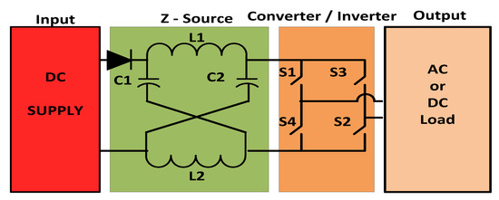 In power electronics converter circuits, such as the voltage source inverter (VSI), the output alternating current (AC) voltage is less than the input direct current (DC) voltage. In current source inverters (CSI), the output AC voltage is higher than the input DC voltage. The Z-Source inverter eliminates the above restriction and will act as a buck or boost inverter [1]. In the DC–DC buck converter, the output DC voltage is always lower than the input DC voltage; in the DC–DC boost converter, the output is always greater than the input DC voltage. The Z-Source converter will buck or boost the DC voltage [1]. A considerable amount of literature is available to demonstrate the features of the Z-Source inverter/converter [2,3,4,5]. However, the Z-Source converter output will be of either AC or DC [6,7,8].