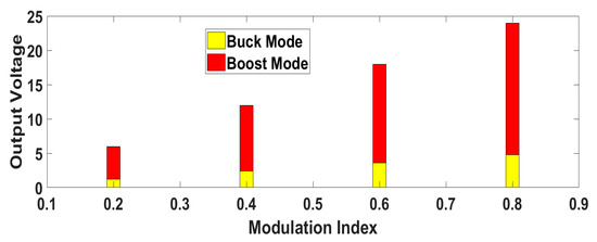 By controlling the boost factor (B), the load DC voltage magnitude is varied. Here, the load voltage is always higher than the magnitude of the DC link voltage. By varying the ST duration, the boost factor can be controlled.