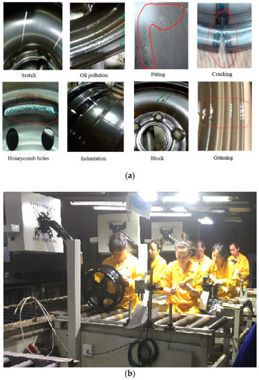 Due to the different definitions of hub defects at home and abroad, foreign testing equipment cannot meet the standards of the domestic enterprises, and hence many enterprises still employ manual inspection for complex surfaces. Nevertheless, the inter-class similarity and intra-class diversity of defects are the main difficulties for the detection. Traditional manual defect detection methods have great limitations, such as low efficiency and high labor costs. The most important problem of manual detection is its susceptibility to workers’ engagement degree and the level of relevant knowledge.