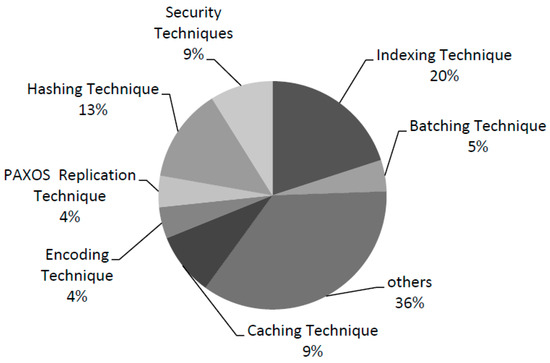The data is collected on the basis of data collection terms, as shown in Table 4. Then, data is organized into different classes on the basis of the main concepts in the domain of this study (see Table 5). We presented the data integration regarding the quality attributes, research challenges of key-value stores, and the related results. The techniques and strategies used by various studies are listed in Table 6. The algorithms used by researchers to provide the solutions of challenges are also extracted. The algorithm-based solutions are organized in the form of a table, as shown in Table 7. We perform analysis in order to categorize the collected data. The classes were extracted from the reviewed literature on the basis of our research questions. If one study addressed more than one challenge, then we mentioned that study in only one class. Figure 5 shows the classification of reviewed literature on KVS.