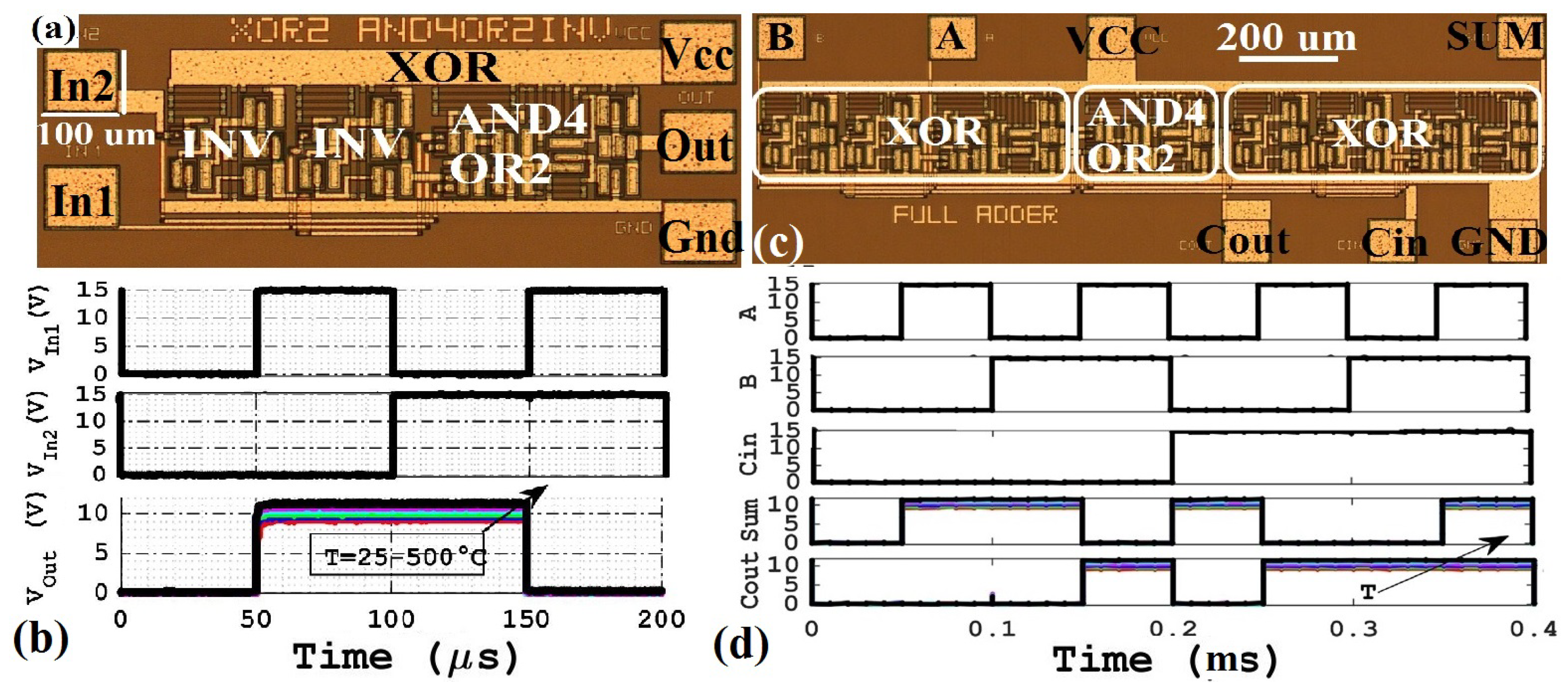- Shakir, M.; Elahipanah, H.; Hedayati, R.; Zetterling, C.M. Electrical Characterization of Integrated 2-Input TTL NAND Gate at Elevated Temperature, Fabricated in Bipolar SiC-Technology. Mater. Sci. Forum 2018, 924, 958–961. [Google Scholar] [CrossRef]