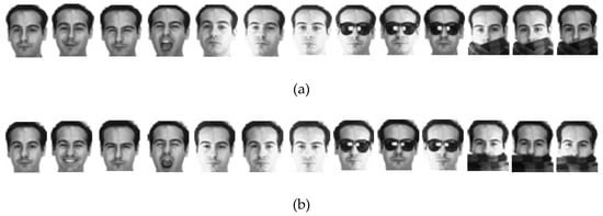 Samples of one individual in two sessions on the AR database. (a) Samples in the first session; (b) samples in the second session.