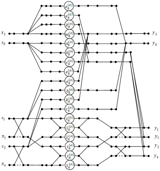 Taking into account the specific structure of the matrix , we can propose the following procedure for the efficient calculation of a 6-point DFrFT: