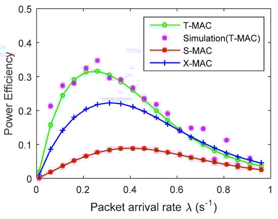 - We derive an analytical model for T-MAC, applying a discrete-time Markov chain focussing on throughput, energy consumption, power efficiency and service energy under unsaturated traffic conditions.