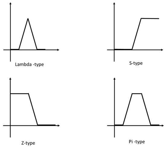 Mendel [40] mentioned that the membership function will be different according to each person’s feelings and judgments, so the given function of the membership is due to people. Most studies have only used standardized membership functions in practical applications. Figure 1 shows four common membership functions: Lambda-type, S-type, Z-type and Pi-type.