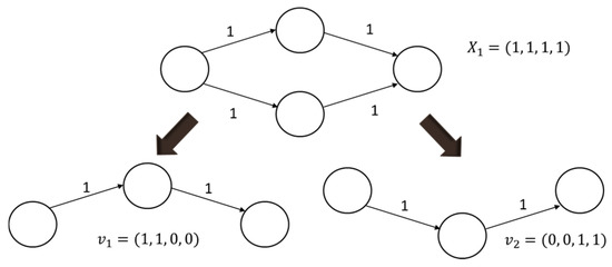 After constructing the model, the next step is to calculate the network reliability as a reference for solving real-world network problems. The calculation method can be divided into the minimal path set (MP) [7,8] and the minimal cut set (MC) [9,10]. The calculation process is as follows: first, find all of the solutions that satisfy the requirements (demand; d) of the MP and MC and extend them to the collection concepts of d-MP [11,12,13,14] and d-MC [15], before finally calculating the network reliability. To put it simply, the concept of network reliability is to establish a network model between the demand side and the supply side, further calculate the reliability of the network and give the user a reference indicator to measure the quality of the real network system.