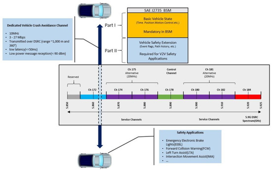 - SAE J2945/1_201603. On-Board System Requirements for V2V Safety Communications. Society of Automotive Engineers, 2016. Available online: https://www.its.dot.gov/research_archives/connected_vehicle/pdf/J2945_1_TSS_TP_Test_Specification-20160405.pdf (accessed on 10 May 2019).