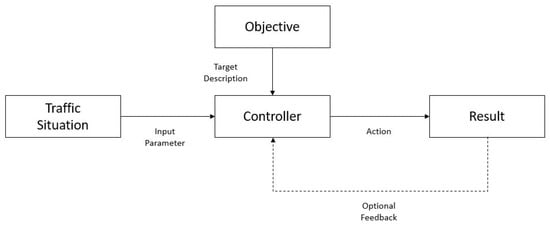 Congestion control mechanisms can be categorized as proactive (or adaptive in [14]) (i.e., feed forward) or reactive (i.e., feedback). Proactive approaches try to prevent congestion before it occurs; whereas reactive approaches try to handle congestion after it is detected. In [20], the authors use traditional control theory to depict the congestion control mechanism, as shown in Figure 2. The objective is usually determined based on the requirements of the safety application, e.g., a threshold channel load value. The controller is open- or closed-loop depending on whether it accepts the feedback from the result, which can be from the network or from another individual node. The controller will adjust the transmission parameters based on the traffic situation or scenario and the objectives.