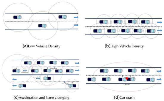 - Jiang, D.; Chen, Q.; Delgrossi, L. Optimal data rate selection for vehicle safety communications. In Proceedings of the Fifth ACM international workshop on VehiculAr Inter-NETworking, San Francisco, CA, USA, 15 September 2008; pp. 30–38. [Google Scholar]
