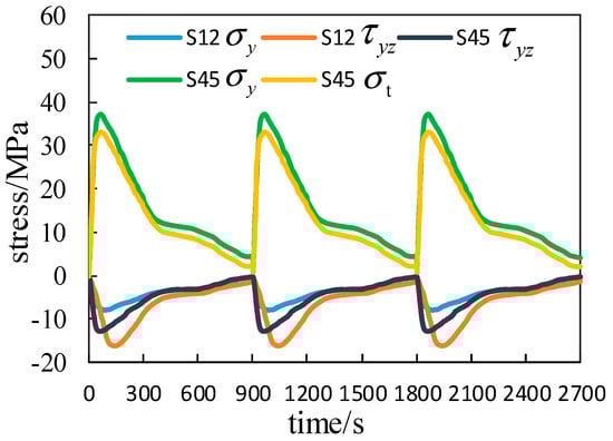 Stress distribution at points A and B.