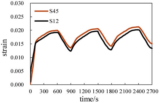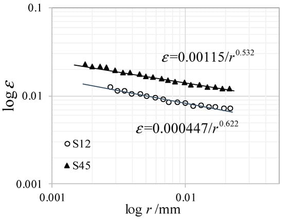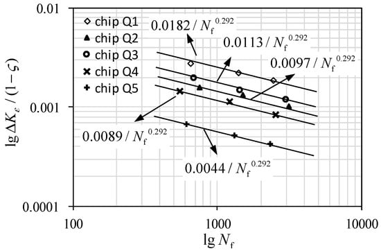 According to the FEM analysis and thermal fatigue tests, the failure from S45 is identified as strain-controlled creep failure [,]. Therefore, the basic strain-controlled fatigue law can be written as the Coffin–Manson formula: