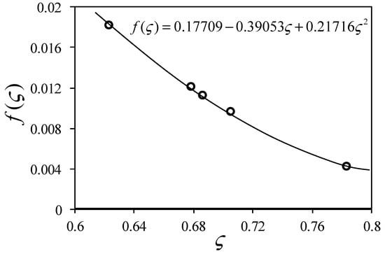 Based on the experimental conditions outlined in this paper, the thermal fatigue life was determined, and the range of strain intensity factor was solved by numerical simulation. Figure 12 shows the relationship between Kε/(1−ς) and Nf when considering the failure from S45. The fitting lines for different chips are almost parallel to each other. This fact means that m is really a material constant, and independent to the singular orders and intensity factors. The slope equals 1/m, so m = 1/0.292. Figure 13 shows the relationship of f(ς) with singular order ς in polynomial form. Therefore, the thermal fatigue life law for S45 is finally determined as: