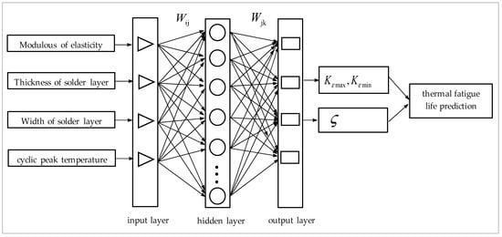 No well recognized methodologies on how to quantify the interfacial strength and predict crack initiation and propagation have been established. The traditional method is to apply the fatigue law of the solder material itself directly to the solder joints, but this method is not adequate, since the stresses and strains are singular at the idealized interface edge or corner [,,]. To overcome this concern, Hattori et al. suggested an approach for assessing the interface reliability of plastic IC packages using two stress intensity parameters that characterize the stress distributions near a bonded edge along the interface []. Similar approaches have been adopted by Gradin [], Groth [], and Reedy and Guess []. Generally, at the edge, stresses have the singular form σ = K/r1−λ, from which the stress intensity factor K and singular order λ are used to configure a criterion for fatigue crack initiation or delamination. For various loadings, if this value is larger than a certain threshold value Kc, crack initiation or delamination is assumed to occur. However, such a method is based on the concept of point failure, which may be difficult to observe through physical experiments, and is valid only for cases where the geometric shape of the solder joints and the loading conditions are the same, as this is used to inform the fatigue law [,]. That is, the empirical fatigue law may have strong limitations in application. For example, the stress intensity factor at the edge of the interface is always dependent on test conditions, assembly geometry, and the mechanical property of the materials and their interactions, as well as the impact of process parameters [,], and the process of obtaining accurate singular field parameters at the interface is also time consuming. To save the calculation of the stress intensity factor at the edge of the interface, soft-computing is a good alternative for handling this complex problem, as it is tolerant of imprecision and uncertainty. To date, various soft-computing methods such as ANN [,,], fuzzy logic [], genetic programming [,,], and adaptive neuro-fuzzy inference systems [] have been applied to the fatigue problems of engineering materials and structures.
