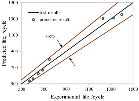 Error band scatter of the predicted thermal fatigue lives with the GA-BP method.