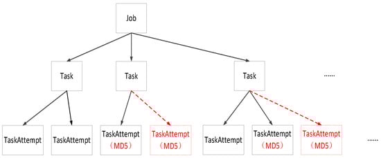 To ensure the security of YARN, SHIYF should compute and compare the MD5 hashes of intermediate and final results. This process involves three services, namely, Job, Task, and TaskAttempt. Their communication processes in SHIYF are shown in Figure 7. Two types of tasks are used; one is the normal task, and the other is chosen to check the MD5 hashes of results.