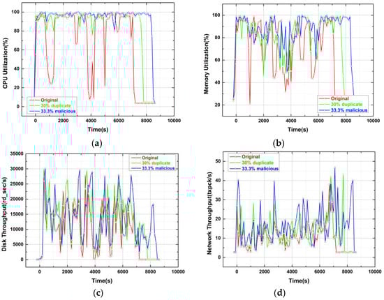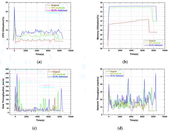 - The average value of hadoop3/hadoop6 records is between 0 and 1, mainly because two continuous failed MD5 hash verification records would be recorded in 25 experiments. Therefore, they might be the potential malicious NMs. Although they were the secure NMs, they were considered the potential malicious ones if they validated the result as the malicious NMs at the same time and the results were inconsistent.