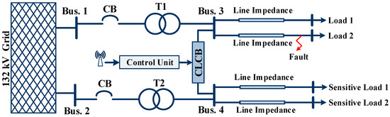 Bus 3 is assumed to be faulty and bus 4 is connected to the sensitive loads by feeders. The CLCB topology is shown in Figure 2.