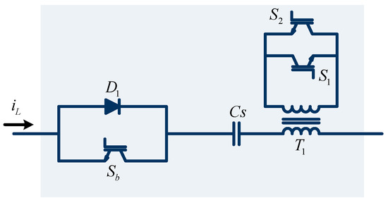 In this circuit, D1 and Sb are power electronics diode and IGBT switch, respectively, and Cs is a series capacitor bank. In addition, the primary side of transformer T1 is connected in series to a line and its secondary is connected to two anti-parallel IGBTs. During normal operation mode, the resonance transformer and series capacitor form a series resonance L-C tank with resonance frequency equal to electrical network frequency. In this case, D1 for positive half-cycles and Sb for negative half-cycles, are in on-state and voltage drop on the CLCB components is negligible. The CLCB configuration during normal operation mode is shown in Figure 3a.