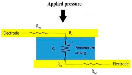 The working principle of the resistive sensors. The sensor consists of a variable resistor, which is the piezoresistive sensing element [42]. The resistive values of this element vary according to the magnitude and direction of the pressure applied to the sensors.