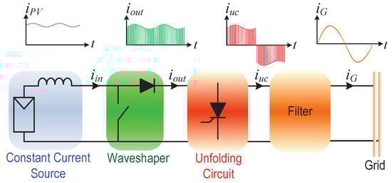 - Roman, I.T.; Silva, L.S. A single-phase current-source inverter with active power filter for grid-tied PV systems. In Proceedings of the 2012 IEEE International Symposium on Power Electronics for Distributed Generation Systems, Aalborg, Denmark, 25–28 June 2012; pp. 349–356. [Google Scholar]