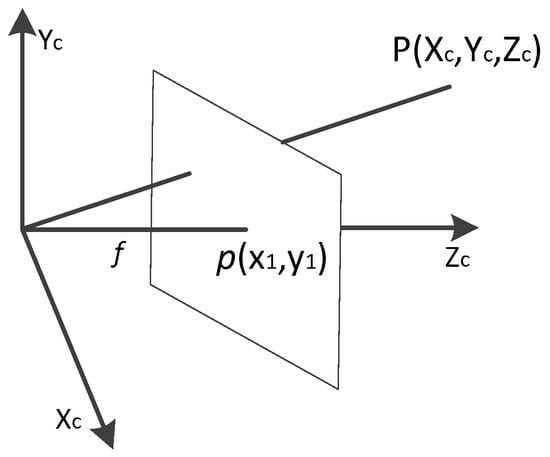 In the formula,  is the camera focal length. The coordinate transformation formula between the camera coordinate system and manipulator coordinate system can be obtained by the geometric analytic method shown in Figure 2.