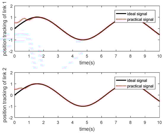 First, we set the ideal angle instruction to , and track the error of the sliding-mode controller: