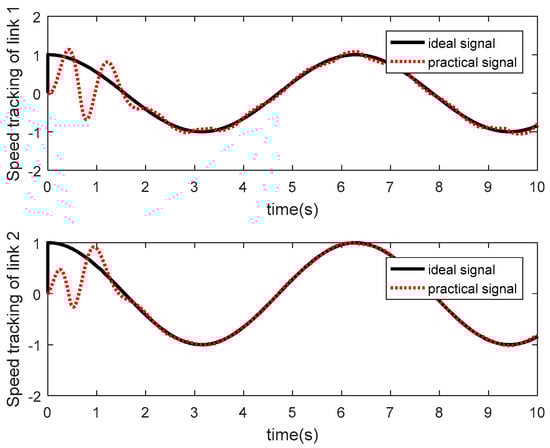 Firstly, the tracking curves of angular position and velocity of joints 1 and 2 are obtained by using sliding mode control without adding the fuzzy neural network algorithm, as shown in Figure 10, Figure 11 and Figure 12.