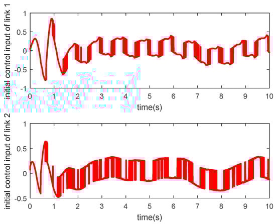 Control input of joints 1 and 2 after adopting the intelligent control scheme.