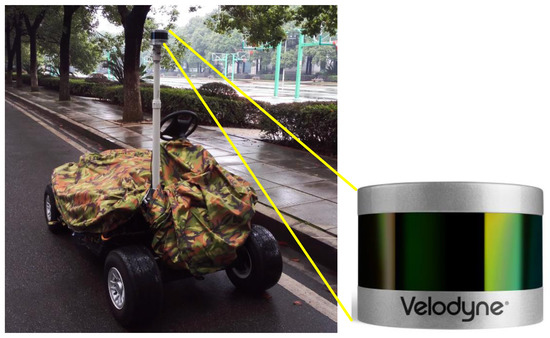 During our experiments, the algorithms run on a laptop computer with 2.4 GHz Intel Core i7 CPU and 8 GB of RAM. In order to achieve real-time performance, multiple CPU threads are utilized in parallel. We perform experiments both on the data collected by our own platform and also on KITTI benchmark. Our platform is a golf cart equipped with a Velodyne VLP-16, a wheel encoder and a low cost IMU, as shown in Figure 8. Although VLP-16 produces 16 scanning lines, we only utilize one single horizontal scanning line to mimic a 2D lidar. The same method is also applied on the KITTI datasets.